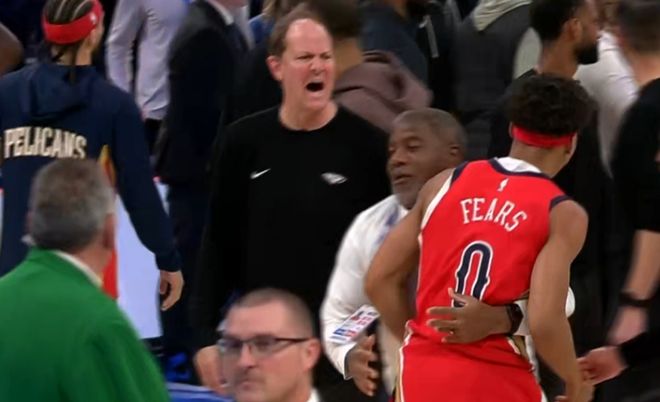 费尔斯不满又试图加剧冲突,多次冲锋去追打多尔特均是被阻挡,随后他被鹈鹕工作人员一路“保驾”返回更衣室。