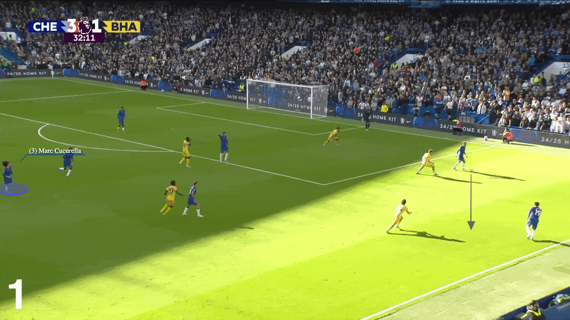 下面的例子来自切尔西在2024年9月4-2战胜布莱顿的比赛。在试图摆脱布莱顿的逼抢时,古斯托传球失误,球传给了桑乔,导致客队夺得球权并形成人数优势;库库雷利亚冲过来帮忙,却飞身扑倒了对手,吃到了一张黄牌。这是他个人的鲁莽行为,但却是由于他的队友们自己陷入了困境。