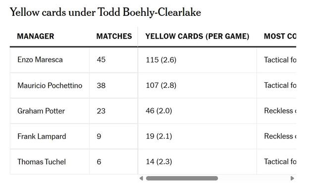 回顾马雷斯卡执教切尔西期间在英超联赛中的每一张牌(115张黄牌和4张红牌),许多人都觉得自己是咎由自取。